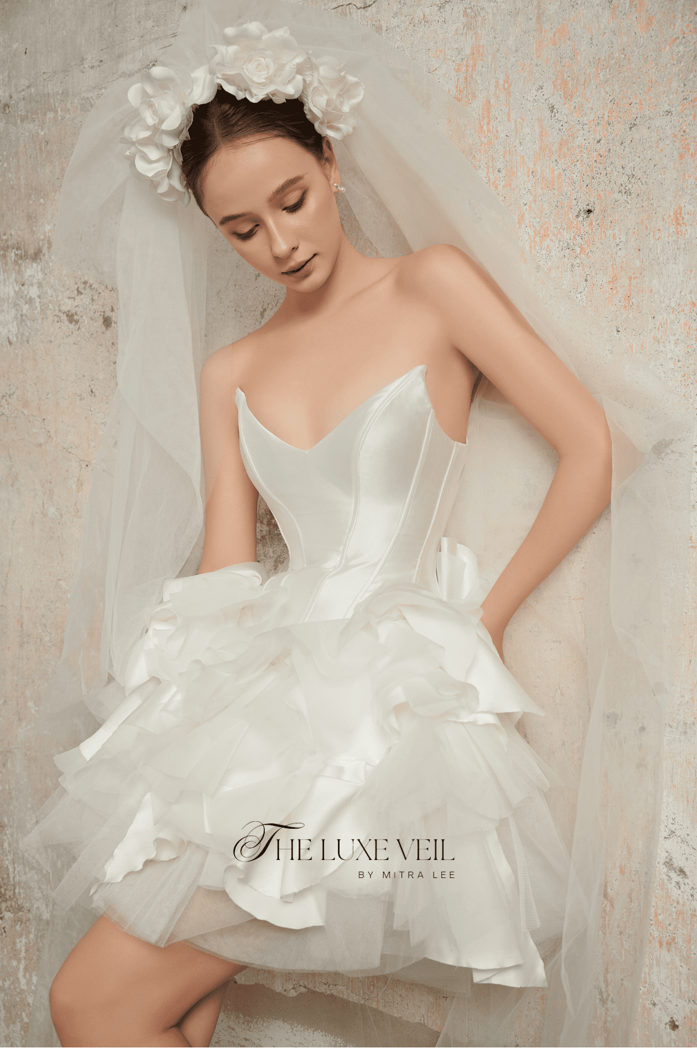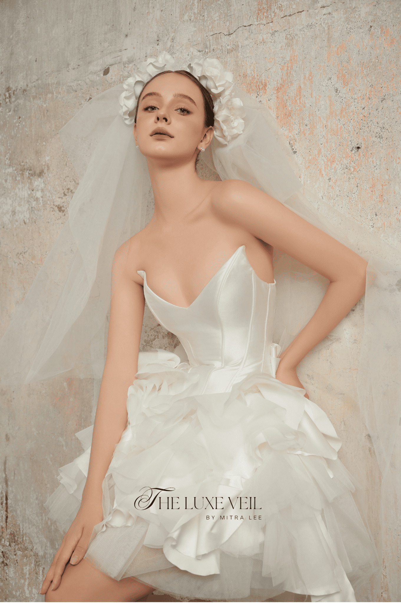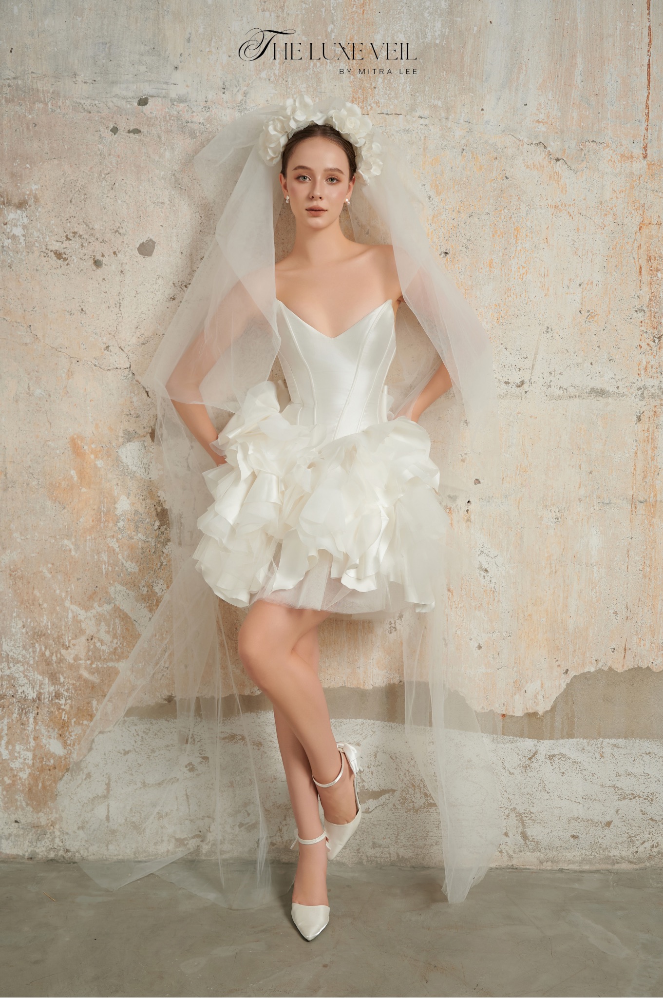 For the bride who dances to her own rhythm, The Blossom Ballet is a celebration of grace, charm, and playful sophistication. Its sculpted bodice whispers elegance, while the cascading layers of soft ruffles evoke the petals of a blooming rose. Crowned with a delicate floral veil, this dress is for the modern bride who wants to twirl through her day with light-hearted beauty. It’s more than a gown, it’s a symphony of romance and individuality. Let your love story unfold in The Blossom Ballet