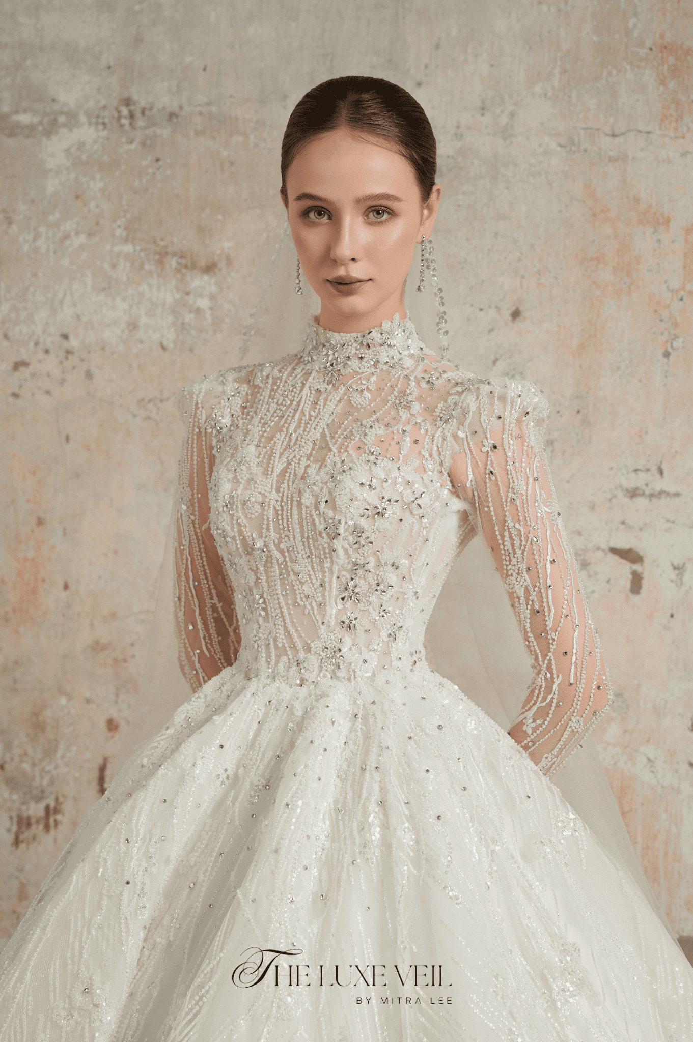 Step into a realm of enchantment, where dreams shimmer like constellations in the midnight sky. The Starlight Empress bridal gown is a masterpiece that captures the celestial beauty of the heavens. Intricate beadwork cascades like falling stars, and every delicate crystal glimmers with the promise of eternal love. This gown is not just a dress, it’s a story, a journey to your most magical moment. With its high-neck elegance and ethereal design, it transforms every bride into a queen of her own timeless fairytale. Let your love shine brighter than the stars as you say “I do” in The Starlight Empress.