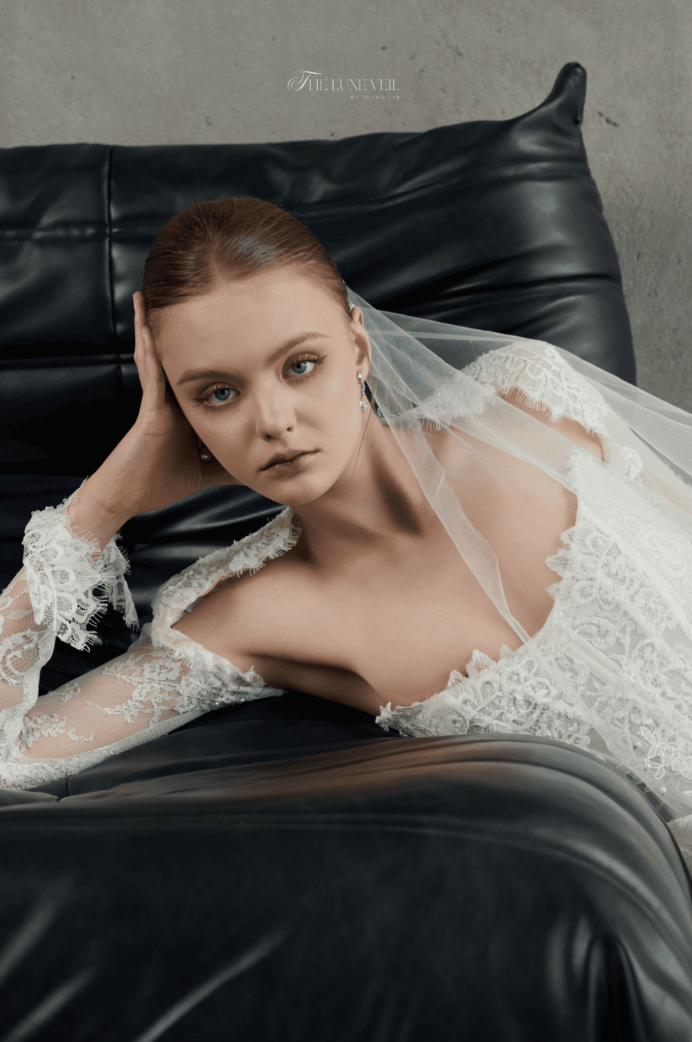 Clarisse is a vision of timeless romance and refined grace. With its intricately embroidered corset bodice and long lace sleeves, this gown captures the delicate strength of femininity. The structured silhouette flows into a sweeping lace skirt and cathedral veil, creating a breathtaking aura of elegance and majesty. For the bride who embodies poise, confidence, and a quiet kind of power, Clarisse is more than a gown, it is an heirloom of beauty, meant to be remembered for generations.